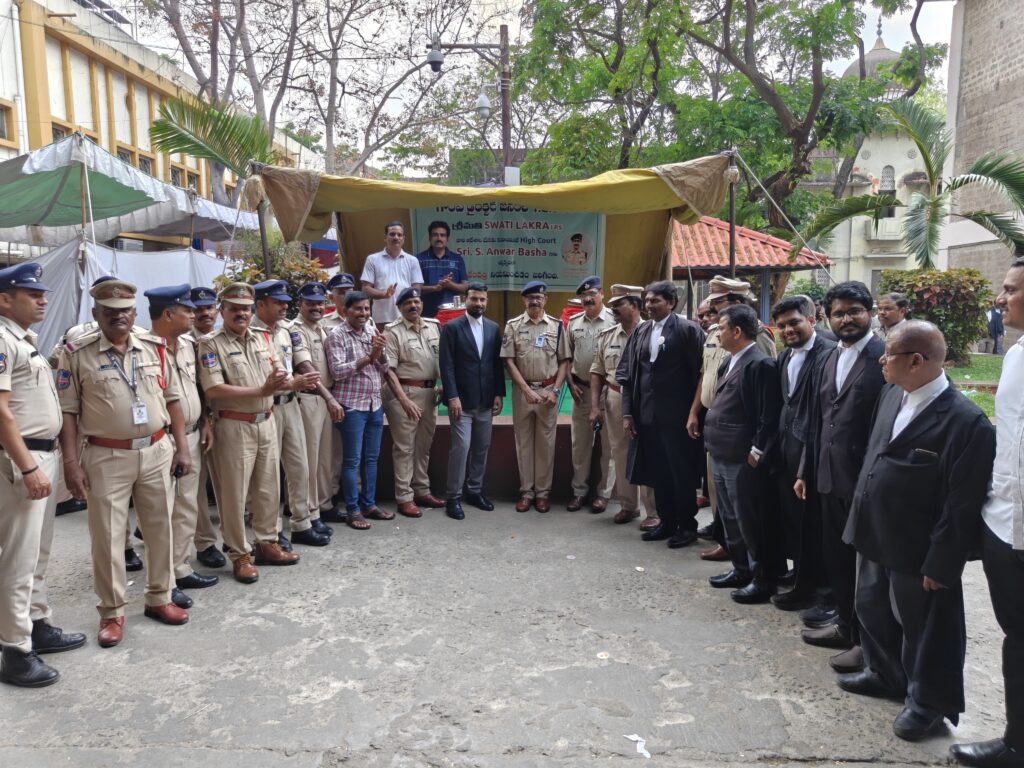 వేసవిని దృష్టిలో ఉంచుకొని హైదరాబాద్ హైకోర్టు ప్రాంగణంలో చలివేంద్రాలను టీజీఎస్పీఎఫ్ కమాండెంట్ ఎస్ అన్వర్ భాష ,అడిషనల్ అడ్వకేట్ జనరల్ టి.రజినీకాంత్ రెడ్డిల చేతుల మీదుగా ప్రారంభించారు. టి జి ఎస్ పి ఎఫ్ డిజిపి స్వాతిలక్రా ఆదేశాల మేరకు హైకోర్టులో చలివేంద్రాలను ఏర్పాటు చేశారు. ఈ సందర్భంగా అన్వర్ భాష మాట్లాడుతూ హైకోర్టుకు వివిధ కేసుల నిమిత్తం వచ్చే వారి కోసం నాలుగు, ఆరు గేట్ల వద్ద చలివేంద్రాలను ఏర్పాటు చేసినట్లు తెలియజేశారు. తాత్కాలికంగా మట్టి కుండలలో నీరు అందించేలా ఏర్పాటు చేశామని, త్వరలో చల్లని తాగునీరు అందించే మిషన్లు ఏర్పాటు చేసే యోచనలో ఉన్నట్లు ఆయన తెలియజేశారు. ఈ కార్యక్రమంలో ఏసి ఎమ్మెస్ రెడ్డి, శ్రీనివాసరావు సిఐలు ఎస్సైలు పిఎస్సైలు పాల్గొన్నారు.