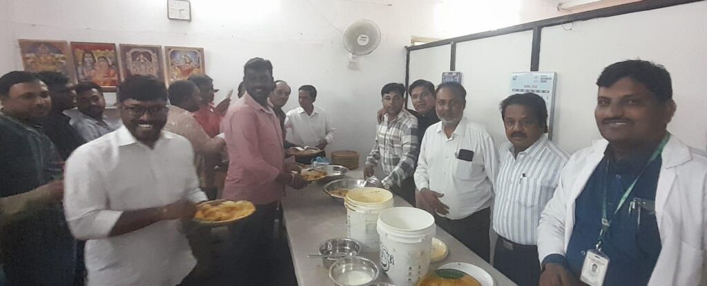 సికింద్రాబాద్ గాంధీ ఆస్పత్రిలో బుధవారం ఘనంగా రంజాన్ ఈద్ మిలాప్ కార్యక్రమం నిర్వహించారు.ఈ సందర్భంగా గాంధీ మినిస్ట్రీయల్ డిపార్ట్మెంట్ కు చెందిన ముస్లిం సోదరులకు అధికారులు, సిబ్బంది రంజాన్ శుభాకాంక్షలు తెలిపారు. అనంతరం లంచ్ కార్యక్రమాన్ని ఏర్పాటు చేశారు. ఈ కార్యక్రమంలో ఇంచార్జ్ సూపరింటెండెంట్ డాక్టర్ శోభ, ఏడీ ఫ్లోరెన్స్ మెర్లిన్, ఆర్ ఎం ఓ- 1 డాక్టర్ శేషాద్రి, డిప్యూటీ సూపరింటెండెంట్ డాక్టర్ సునీల్, ఆర్ ఎం ఓ నాజిం, గాంధీ టీఎన్జీవో ప్రెసిడెంట్ గంటా ప్రభాకర్ యాదవ్, వైస్ ప్రెసిడెంట్ లు ఎంఏ ఖలీమ్, గోపాల్, యూసుఫ్, జనరల్ సెక్రెటరీ ప్రసన్న ఆనంద్, ట్రెజరర్ శ్రవణ్ కుమార్, ఆర్గనైజింగ్ సెక్రటరీ అబ్దుల్ రహీం , హనీఫ్ ఉద్దీన్, జాయింట్ సెక్రెటరీ మీర్ మక్సుద్ అలీ, జనార్ధన్, విశ్వనాథ్, సరళ, అష్రఫ్ నజీరా, సత్యనారాయణ పాల్గొన్నారు.