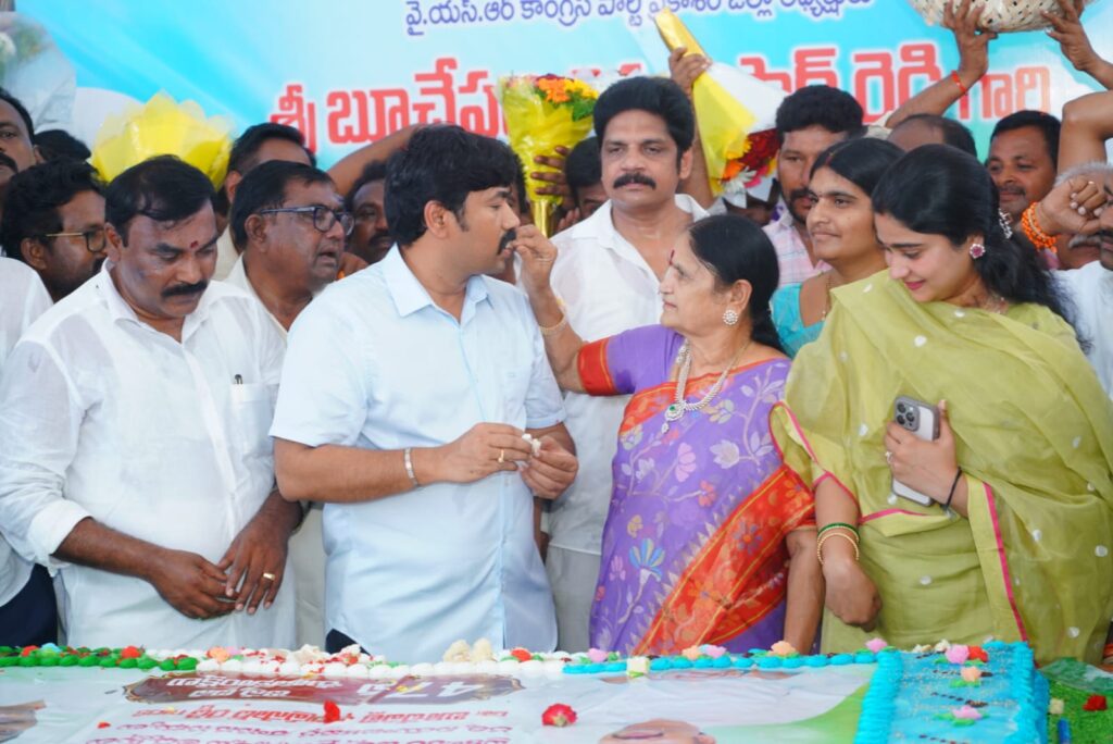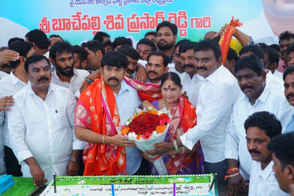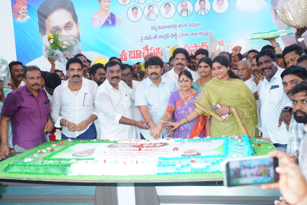 బూచేపల్లి శివప్రసాద్ రెడ్డి, జిల్లా పరిషత్ చైర్ పర్సన్ బూచేపల్లి వెంకాయమ్మ కట్ చేశారు. వైఎస్సార్ సీపీ జిల్లా యువజన విభాగం అధ్యక్షుడు గొంగటి శ్రీకాంత్ రెడ్డి, విద్యార్థి విభాగం జిల్లా అధ్యక్షుడు పల్నాటి రవీంద్రారెడ్డి, ప్రచార విభాగం జిల్లా అధ్యక్షుడు కనపర్తి శేషారెడ్డిల ఆధ్వర్యంలో పార్టీ కార్యాలయం వద్ద ఏర్పాటు చేసిన రక్తదాన శిబిరాన్ని మాజీ మంత్రి, సంతనూతలపాడు నియో జకవర్గ ఇన్చార్జి మేరుగు నాగార్జున, ఒంగోలు పార్ల మెంట్ పరిశీలకుడు బత్తుల బ్రహ్మానందరెడ్డి, ఒం గోలు నియోజకవర్గ ఇన్చార్జి చుండూరి రవిబాబు