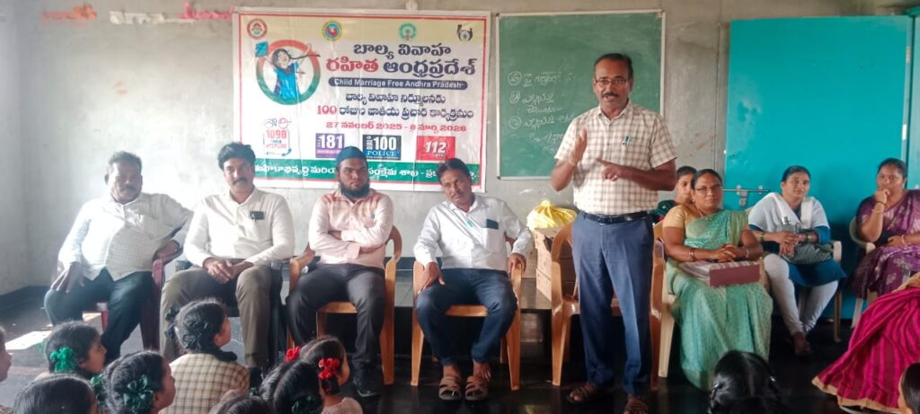బాలికలకు విద్యహక్కు, బాల్య వివాహాల నివారణ, బాల కార్మిక వ్యవస్థ నిర్మూలన, లైంగిక వేధింపుల నుండి రక్షణ వంటివి బాలికలపై జరుగుతున్న వివక్షతను నిర్మూలించి వారి అభివృద్ధికి అనుకూల వాతావరం కల్పించాల్సిన అవసరం మరి అందరిపై ఉందని జిల్లా లీగల్ సెల్ ప్రొడక్షన్ ఆఫీసర్ బి. రత్న ప్రసాద్ తెలియజేశారు. తాళ్లూరు కస్తూరిబా గాంధీ విద్యాలయం నందు బాల్య వివాహ రహిత ఆంధ్ర ప్రదేశ్ బాల్య వివాహ నిర్మూలన కార్యక్రమంలో భాగంగా దళిత బహుజన రిసోర్స్ సెంటర్ ఆధ్వర్యంలో కస్తూరిబా గాంధీ బాలికల విద్యాలయం మరియు లక్కవరం జిల్లా పరిషత్ హై స్కూల్ నందు ఆయన మాట్లాడినారు. ఈ కార్యక్రమంనకు డిబిఆర్సి జిల్లా కో-ఆర్డినేటర్ దార్ల కోటేశ్వరరావు అధ్యక్షత వహించినారు. ఈ కార్యక్రమంలో తాళ్లూరు మండల విద్యాశాఖ అధికారి -2 ఎల్. సుధాకర రావు మాట్లాడుతూ బాలికలు దేశ భవిష్యత్తు అని, వారికి సమాన అవకాశాలు కల్పనే సమాజం అన్ని రంగాలలో అభివృద్ధి చెందుతుందని,బాలికల హక్కుల పరిరక్షణ, ప్రభుత్వ శాఖలు, తల్లిదండ్రులు, ఉపాధ్యాయులు మరియు సమాజo సమిష్టిగా కృషి చేయాలని ఆయన తెలియజేశారు. ఈ కార్యక్రమంలో ఏ వి ఏ -నీతి ఆయొగ్ జిల్లా ప్రాజెక్ట్ అసోసియేట్ పి .సిద్దిక్ మాట్లాడుతూ 18 సంవత్సరాల లోపు బాలికలకు, 21 సంవత్సరాలలోపు బాలురకు వివాహం జరిపించటం చట్ట పరంగా నేరమని ప్రజలు గుర్తించాలని, ప్రతి బాలిక చదువుకొని సమాజంలో ఉన్నత స్థాయికి చేరేలా ఉత్సాహించాలి. బాలికల విద్య, ఆరోగ్యం,భద్రతపై అందరూ బాధ్యతగా వ్యవహరించాలని ఆయన తెలియజేశారు. ఈ కార్యక్రమంలో జిల్లా పరిషత్ హై స్కూల్ ప్రధాన ఉపాధ్యాయులు బి.పద్మనాభం, లక్కవరం గ్రామ మహిళా సంరక్షణ కార్యదర్శి ఎస్. కోటేశ్వరమ్మ. ఇండియా లేబర్ లైవ్ ప్రతినిధి ఏ. కిరణ్ కుమార్, తాళ్లూరు పక్షుర్బా గాంధీ బాలిక విద్యాలయ ప్రత్యేక అధికారిని, ఉపాధ్యాయులు