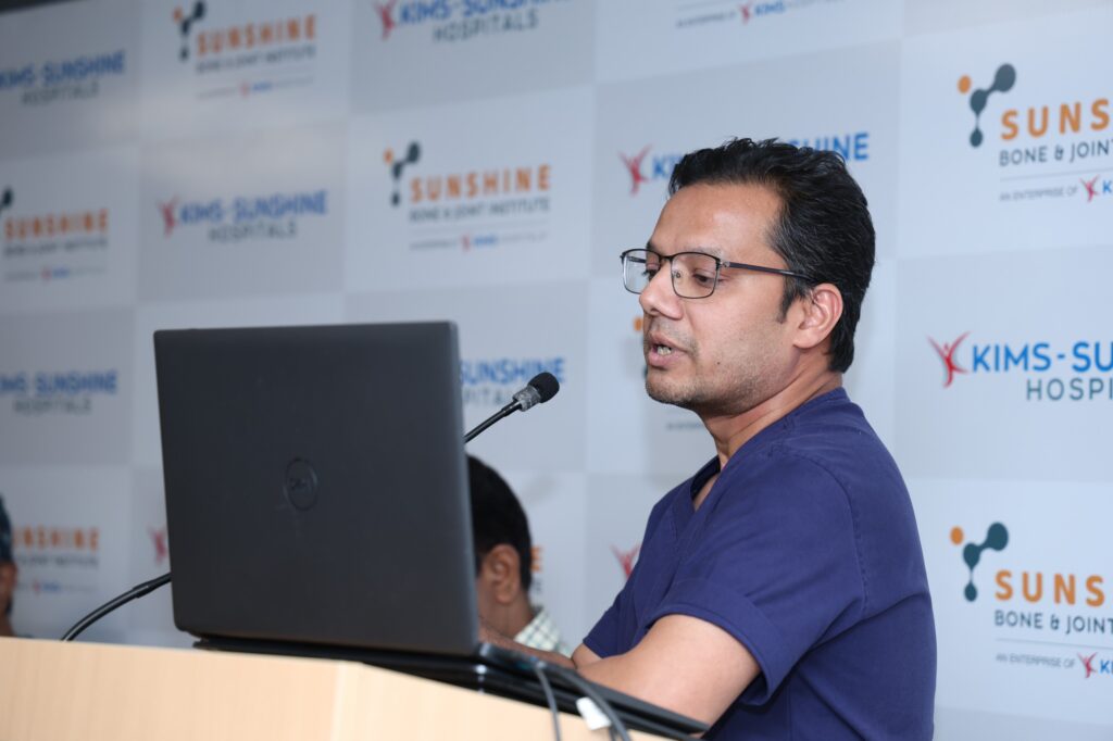 స్పైన్ సర్జరీ టెక్నాలజీ లేని రోజుల్లో స్పైన్ సర్జరీలో కాంప్లికేషన్లు వచ్చేవి కానీ ఇప్పుడు ఆధునిక టెక్నాలజీ అందిపుచ్చుకొని స్పైన్ సర్జరీలో స్పైన్ నావిగేషన్, హై స్పీడ్ డ్రిల్స్, ఖచ్చితత్వంతో కూడిన సేఫ్ స్పైన్ సర్జరీ టెక్నాలజిని కిమ్స్ సన్ షైన్ హాస్పిటల్ అందుబాటులోకి తీసుకువచ్చినట్లు చీఫ్ రోబోటిక్ జాయింట్ రీప్లేస్మెంట్ సర్జన్, కిమ్స్ సన్ షైన్ బోన్ అండ్ జాయింట్ ఇనిస్టిట్యూట్ చైర్మన్ డాక్టర్ ఎ.వి.గురవారెడ్డి తెలిపారు. బేగంపేటలోని కిమ్స్ సన్లైన్ హాస్పిటల్లో అందుబాటులోకితీసుకువచ్చిన స్పైన్ సూట్ టెక్నాలజీని గురువారం ప్రారంభించారు. ఈ సందర్భంగాఏర్పాటుచేసిన విలేకరుల సమావేశంలో స్పైన్ సూట్ టెక్నాలజీ గురించి కిమ్స్ సన్ షైన్ హాస్పిటల్ సీనియర్ స్పైన్ సర్జన్ డాక్టర్ హిమాన్షు ప్రసాద్మాట్లాడుతూ స్పైన్ సర్జరీ చికిత్సలో ఇదొక నూతన అధ్యాయంగా పేర్కొన్నారు. ఈ టెక్నాలజీ ద్వారా రోగికి ఖచ్చితత్వంతో చికిత్స అందించడం ద్వారా మెరుగైన ఫలితాలు ఉంటాయన్నారు. ఈ టెక్నాలజీలో స్పైన్ ఎండోస్కోపీ, ఖచ్చితత్వం కోసం అధ్యాతునిక నావిగేషన్, తక్కువ కణజాలం నష్టం కలిగించే విధంగా అల్ట్రాసోనిక్ బోన్ స్కాల్పెల్, వెంట్రుక కన్నా సన్నగా ఉండే నరాలను స్పష్టంగా విజువలైజేషన్ చేసి చూపించే హై ఎండ్ సర్జికల్ మైక్రోస్కోపీ, నరాల రక్షణ కోసం ఇంట్రా ఆపరేటివ్, హై స్పీడ్ డ్రిల్ వంటి సాంకేతిక టెక్నాలజీని అందుబాటులోకి తీసుకువచ్చామని తెలిపారు. ఈ టెక్నాలజీ ద్వారా తక్కువ రక్తస్రావం, వేగంగా రోగి కొలుకునే విధంగా మెరుగైన ఫలితాలు ఉంటాయన్నారు. అత్యవసరైమన ట్రామా కేసులను విజయవంతంగా నిర్వహించవచ్చన్నారు. డాక్టర్ గురవారెడ్డి మాట్లాడుతూ నడుంనొప్పితో వచ్చిన ప్రతి వారికి ఆపరేషన్ చేస్తారనే అపోహ వద్దు ఎవరికి అవసరమో వారికి మాత్రమే నిపుణులైన డాక్టర్ల పర్యవేక్షణలో నిర్వహిస్తామన్నారు. సన్లైన్ బోన్ అండ్ జాయింట్ ఇనిస్టిట్యూట్ నా ఆధ్వర్యంలో 20 ఏళ్ల క్రితం స్థాపించాం ఇప్పుడు ఈ గ్రూప్ లో 25 మందికి పైగా నిపుణులైన స్పెషలిస్టులు ఉన్నారని తెలిపారు. ఇండియలో అత్యంత పెద్ద ఆర్థోపెడిక్ గ్రూప్ గా గుర్తింపు పొందిందన్నారు. ఐసాక్లో ప్రపంచ వ్యాప్తంగా ఉన్న 24 హాస్పిటల్స్ మాత్రమే సభ్యత్వం పొందాయని అంతటి గుర్తింపు పొందిన సంస్థలో (సన్లైన్ బోన్ అండ్ జాయింట్ ఇనిస్టిట్యూట్ ) సభ్యత్వం పొందడం గర్వంగా ఉందన్నారు. ఈ సందర్భంగా పవర్ పాయింట్ ప్రజెంటేషన్ ద్వారా స్పైన్ సూట్ టెక్నాలజి గురించి డాక్టర్ హిమాన్షు ప్రసాద్ పవర్ పాయింట్ ప్రజెంటేషన్ ద్వారా వివరించారు. వచ్చే వారం