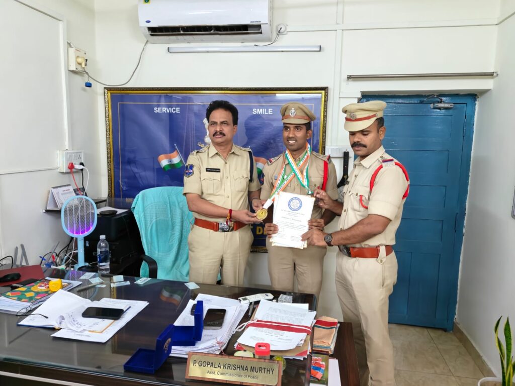 అఖిల భారత పోలీస్ డ్యూటీ మీట్–2025-2026 లో మారేడుపల్లి ఎస్‌ఐ నవీన్ తన అసాధారణ ప్రతిభతో జాతీయ స్థాయిలో సత్తా చాటారు. మహారాష్ట్రలోని నాగ్‌పూర్‌లో మార్చి 29 నుంచి ఏప్రిల్ 3 వరకు నిర్వహించిన ఈ పోటీల్లో ఆయన రెండు పతకాలను కైవసం చేసుకున్నారు. ముఖ్యంగా మెడికో-లీగల్ ఓరల్ విభాగంలో అత్యుత్తమ ప్రదర్శన కనబరిచి బంగారు పతకాన్ని సాధించగా, హ్యాండ్లింగ్, లిఫ్టింగ్ అండ్ ప్యాకింగ్ విభాగంలో కాంస్య పతకాన్ని సొంతం చేసుకున్నారు.జాతీయ స్థాయిలో పతకాలు సాధించిన ఎస్‌ఐ నవీన్‌ను బేగంపేట్ ఏసీపీ గోపాల కృష్ణ మూర్తి, మారేడుపల్లి ఇన్‌స్పెక్టర్ వెంకటేశ్ ఘనంగా సన్మానించారు. ఈ సందర్భంగా ఏసీపీ గోపాల కృష్ణమూర్తిమాట్లాడుతూ వృత్తి పట్ల నవీన్ చూపిస్తున్న అంకితభావం, నైపుణ్యం పోలీస్ శాఖకే గర్వకారణమని కొనియాడారు. కఠినమైన పోటీ ఉండే డ్యూటీ మీట్‌లో పతకాలు సాధించడం మామూలు విషయం కాదని, ఇలాంటి విజయాలు తోటి సిబ్బందిలో నూతనోత్సాహాన్ని నింపుతాయని ఆయన పేర్కొన్నారు. ఈ కార్యక్రమంలో పోలీస్ సిబ్బంది పాల్గొని నవీన్‌కు అభినందనలు తెలిపారు.