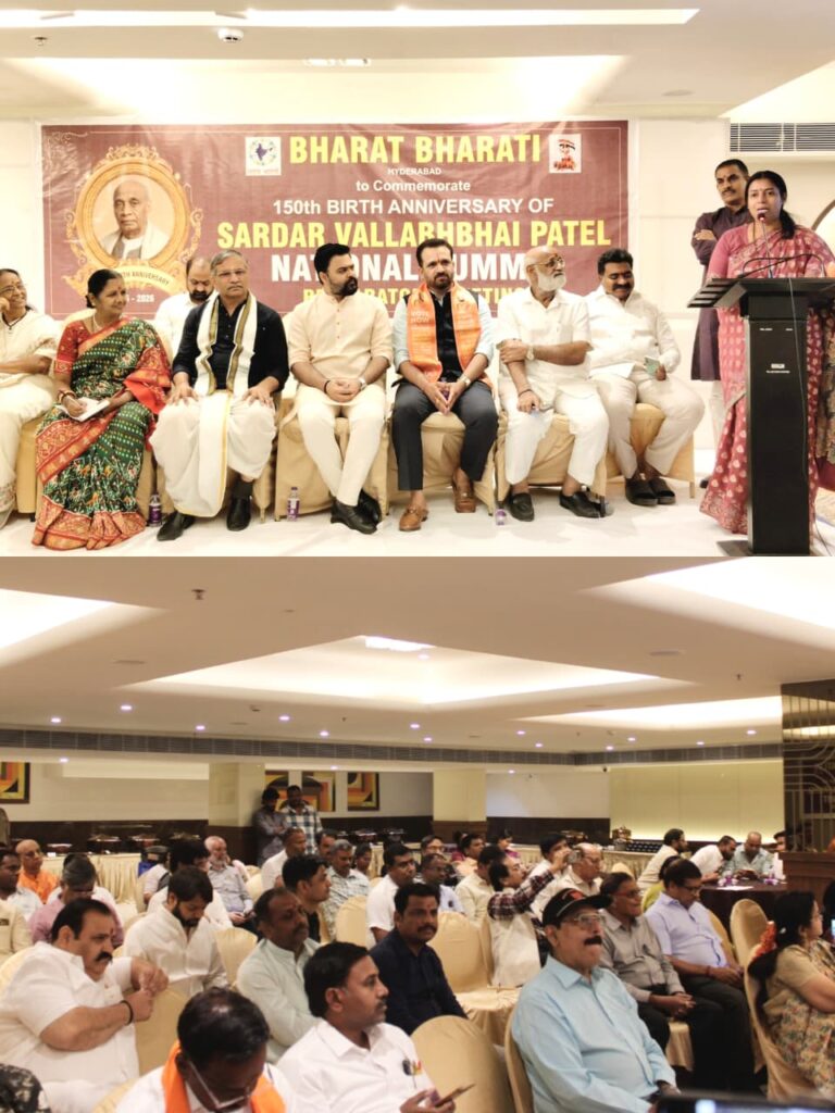 భారతదేశపు ఉక్కు మనిషి గా పూజించే సర్దార్ వల్లభాయ్ పటేల్ 150వ జయంతిని పురస్కరించుకుని, మే 31న హైదరాబాద్‌లో జరగనున్న సందర్భంగా, భారత్ భారతి ఈరోజు ఒక ప్రత్యేక సన్నాహక సమావేశాన్నివిజయవంతంగా నిర్వహించించారు.మే 31న హైదరాబాద్‌లో ఒక ఘనమైన మరియు అర్థవంతమైన వేడుక కోసం ప్రణాళికను ప్రారంభించేందుకు, ఈ సమావేశానికి వివిధ సంస్థల ప్రముఖ సభ్యులు, సమాజ నాయకులు హాజరయ్యారు.