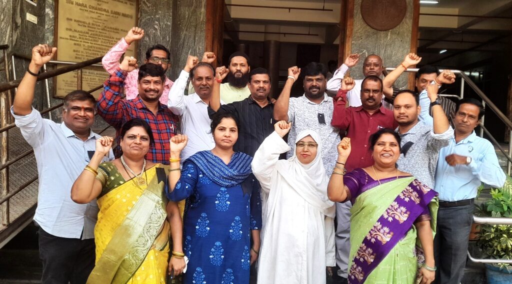 తెలంగాణ ఉద్యోగ, గెజిటెడ్ అధికారులు, ఉపాధ్యాయులు, కార్మిక ఆండ్ పెన్షనర్ల ఐక్య కార్యాచరణ సమితి (TGEJAC) ఆధ్వర్యంలో తమ డిమాండ్లను పరిష్కారించాలని శుక్రవారం గాంధీ ఆసుపత్రి వద్ద లంచ్ విరామ సమయంలో టీఎన్జీవో గాంధీ యూనిట్ నాయకులు నల్లబ్యాడ్జీలు ధరించి నిరసన ప్రదర్శన నిర్వహించి,నినాదాలు చేశారు. ఈ సందర్భంగా గాంధీ టీఎన్జీవో ప్రెసిడెంట్ గంట ప్రభాకర్ యాదవ్ మాట్లాడుతూ.. రాష్ట్రంలో రెండో పీఆర్సీని వెంటనే అమలు చేసి 51 శాతం ఫిట్మెంట్ ఇవ్వాలని కోరారు. ఉద్యోగుల పెండింగ్ బిల్లులు వెంటనే చెల్లించాలని, 13వ వేతన సవరణలో ఉన్న సమస్యలను పరిష్కరించాలని డిమాండ్ చేశారు. కొత్త పెన్షన్ విధానం (సీపీఎస్) రద్దు చేసి పాత పెన్షన్ పద్ధతి (ఓపీఎస్) అమలు చేయాలని, 2004 సెప్టెంబర్ 1 తరువాత నియమితులైన ఉద్యోగులకు కూడా ఈ ప్రయోజనం కల్పించాలని కోరారు. గాంధీలో నిరసన తర్వాత టీఎన్జీవో నాయకులు అంతా హైదరాబాద్ జిల్లా కలెక్టర్ ఆఫీస్ కు వెళ్ళి అక్కడ నిరసన వ్యక్తం చేశారు.ఉద్యోగుల హక్కులు సాధించే వరకు పోరాటం కొనసాగిస్తామని నేతలు సృష్టం చేశారు. ఈ కార్యక్రమం తెలంగాణ రాష్ర్ట మెడికల్ ఫోరం జనరల్ సెక్రటరీ ఎం. సత్యనారాయణ రెడ్డి ఆధ్వర్యంలో జరిగింది. గాంధీ టీఎన్జీవో యూనిట్ అధ్యక్షుడు గంట ప్రభాకర్ యాదవ్, కార్యదర్శి ప్రసన్న, కలీమ్, శ్రావణ్, సరళ, సత్యనారాయణ, జనార్ధన్, మక్సూద్, రహీమ్, శ్రీనివాస్,విశ్వనాథ్, బ్రహ్మం, గోపాల్ తదితరులు పాల్గొన్నారు.